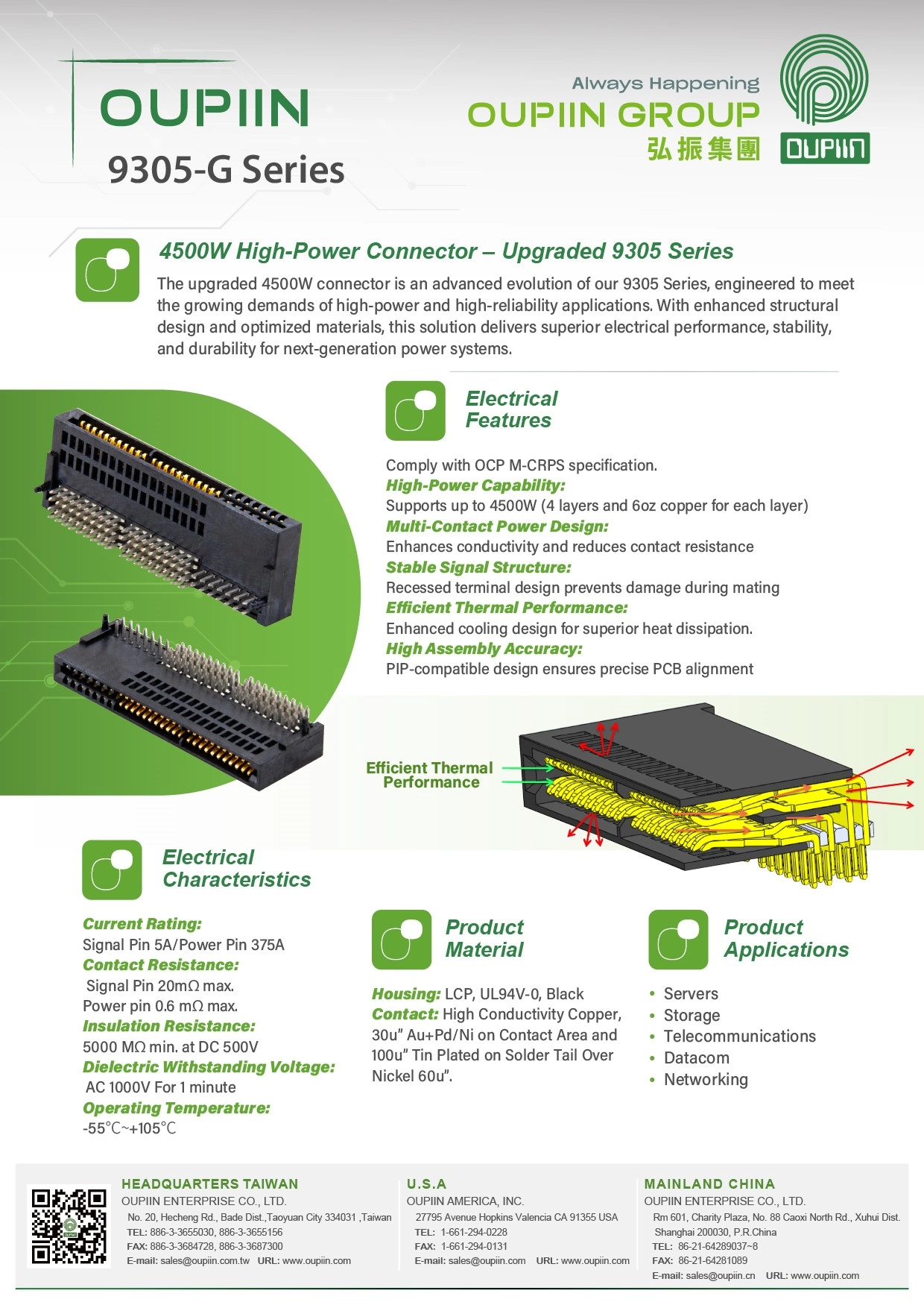 375Amp 4500W Power+Signal Card Edge 9305-G Series